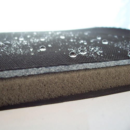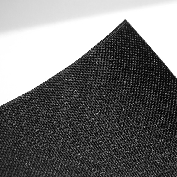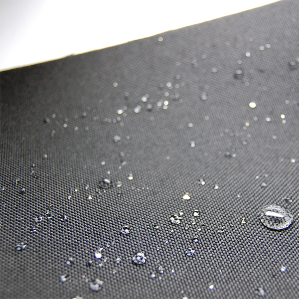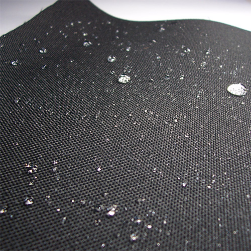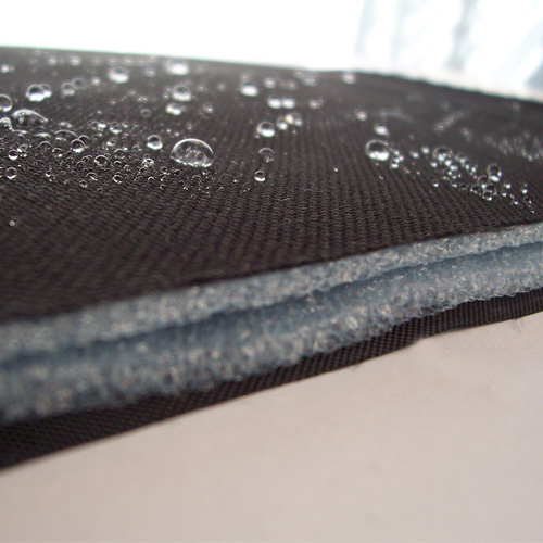 Černý polyester s nepromokavým PVC zátěrem z vnitřní strany